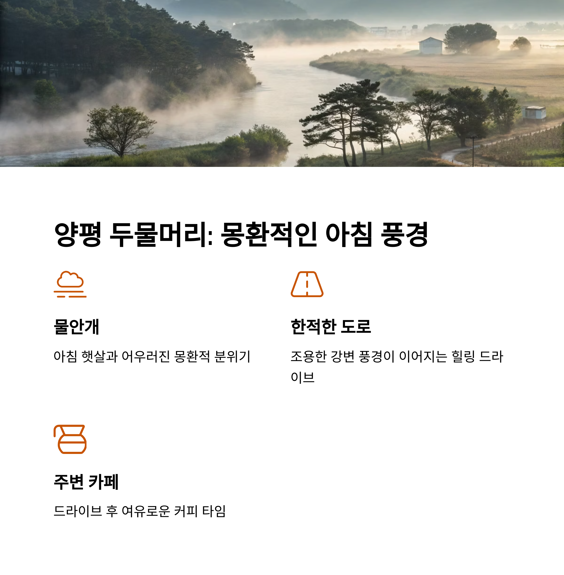 2. 양평 두물머리: 물안개와 함께 맞이하는 아침 드라이브