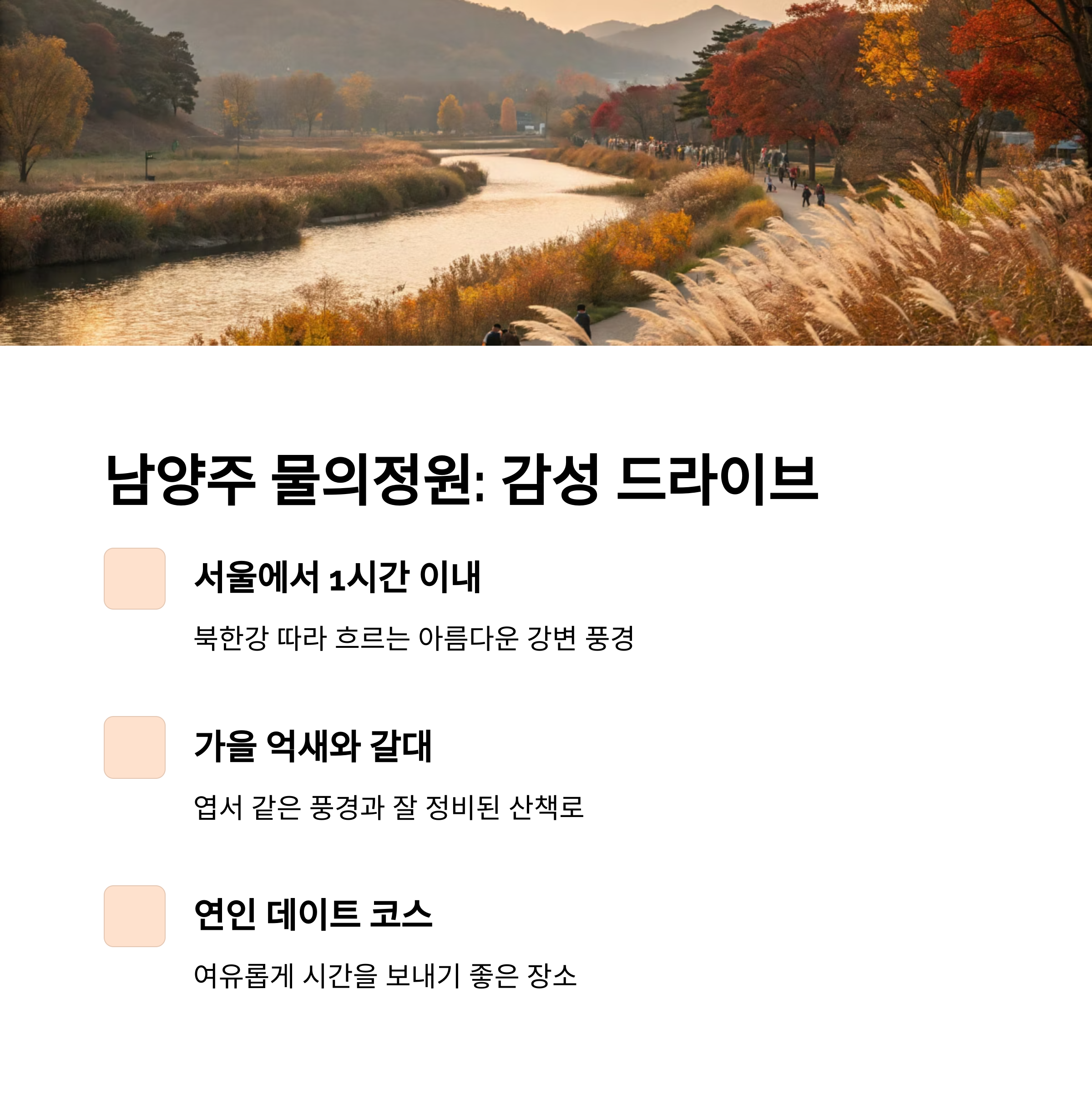 1. 남양주 물의정원: 북한강 따라 흐르는 감성 드라이브