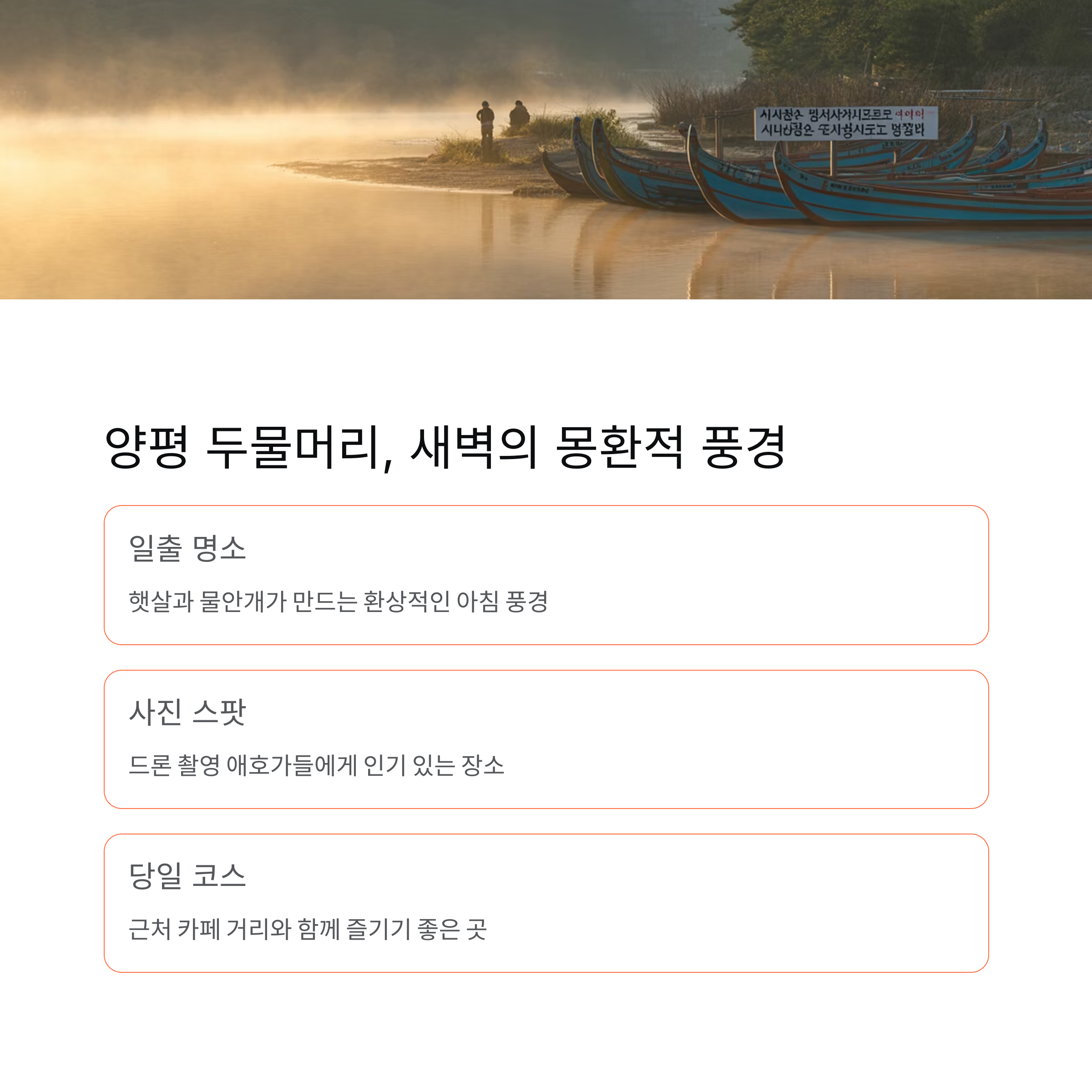양평 두물머리는 일출과 물안개로 유명한 힐링 스팟입니다.