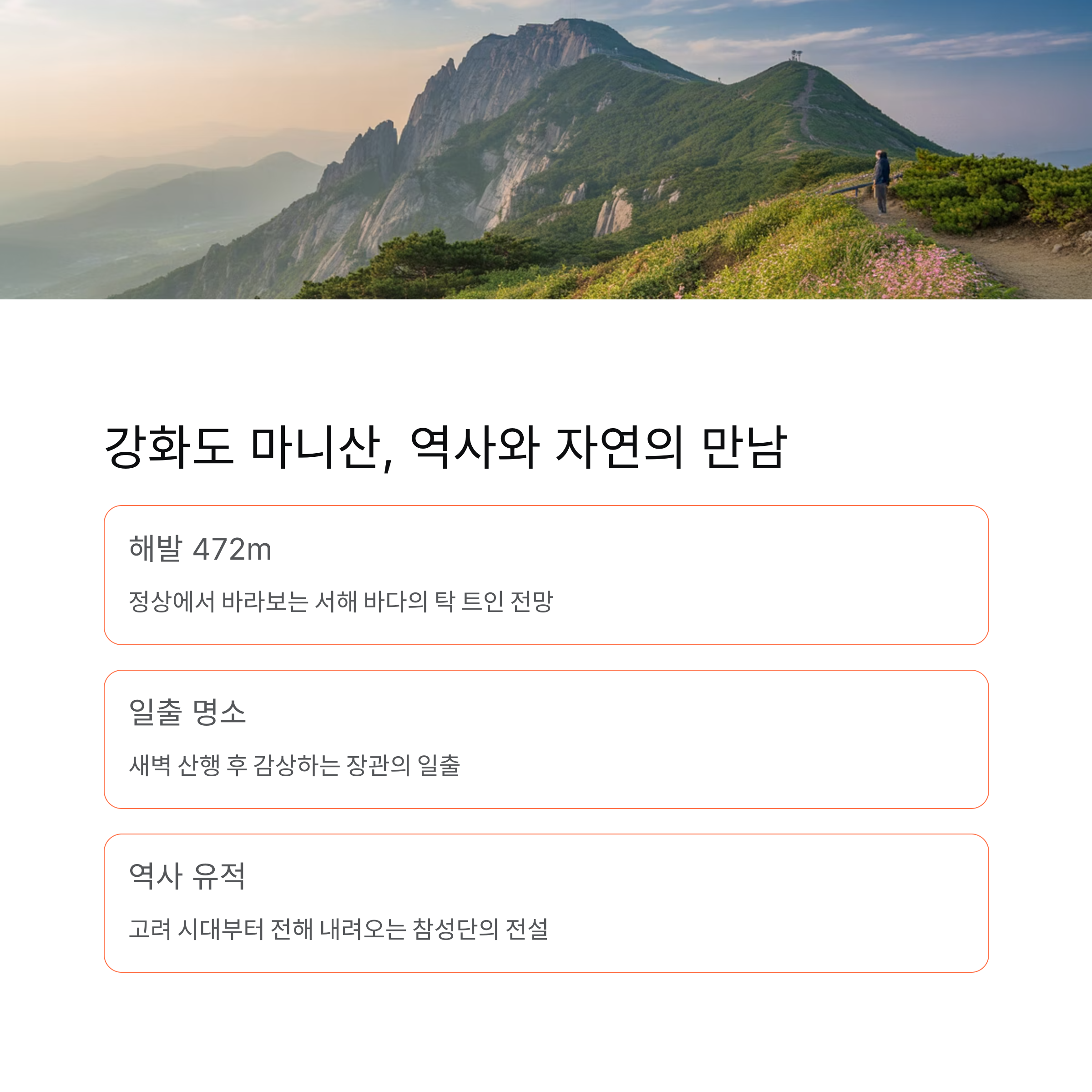 강화도 마니산, 일출 명소이자 신비로운 산행지
