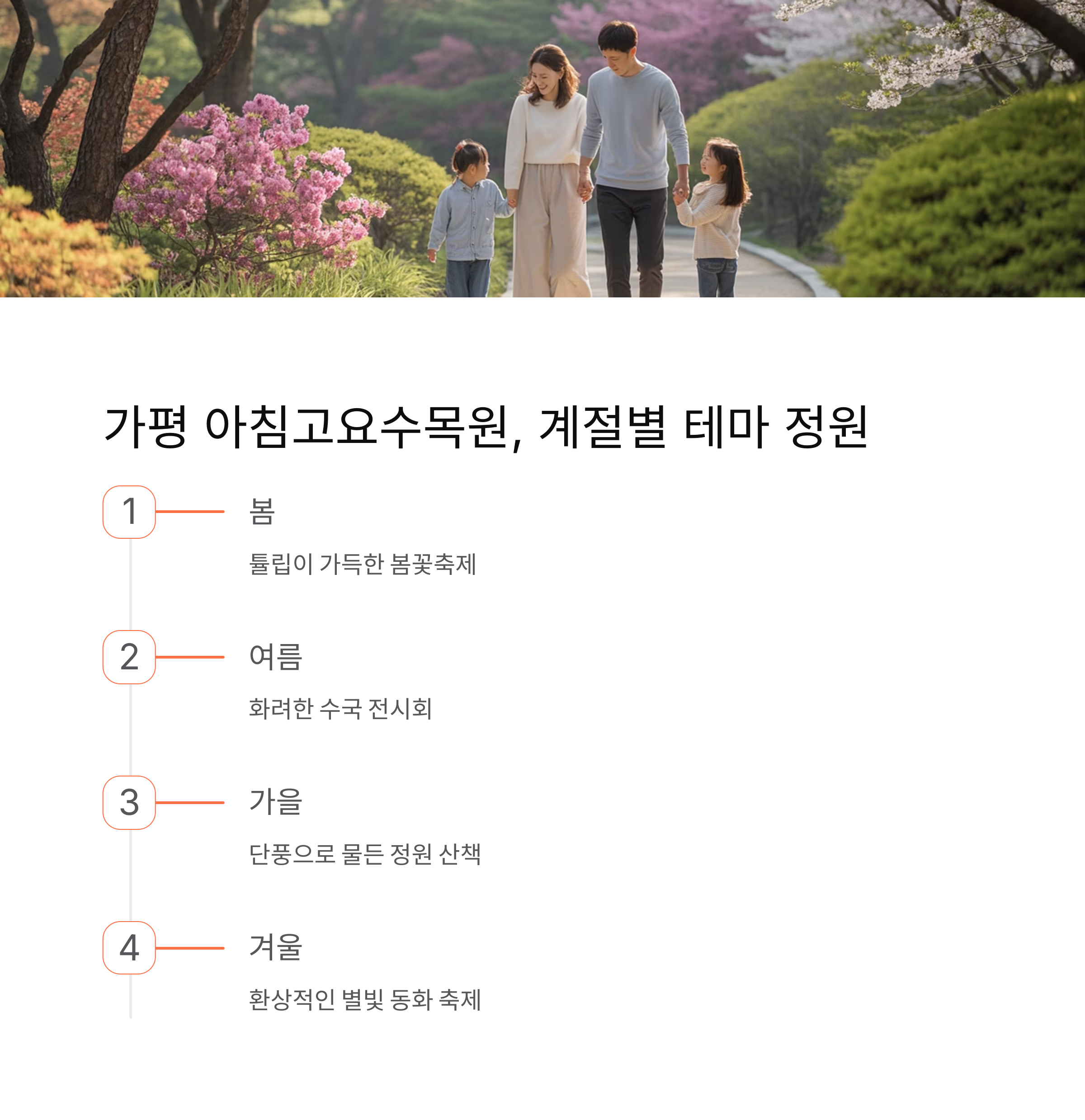 봄에는 튤립, 여름에는 수국, 가을에는 단풍, 겨울에는 별빛 정원이