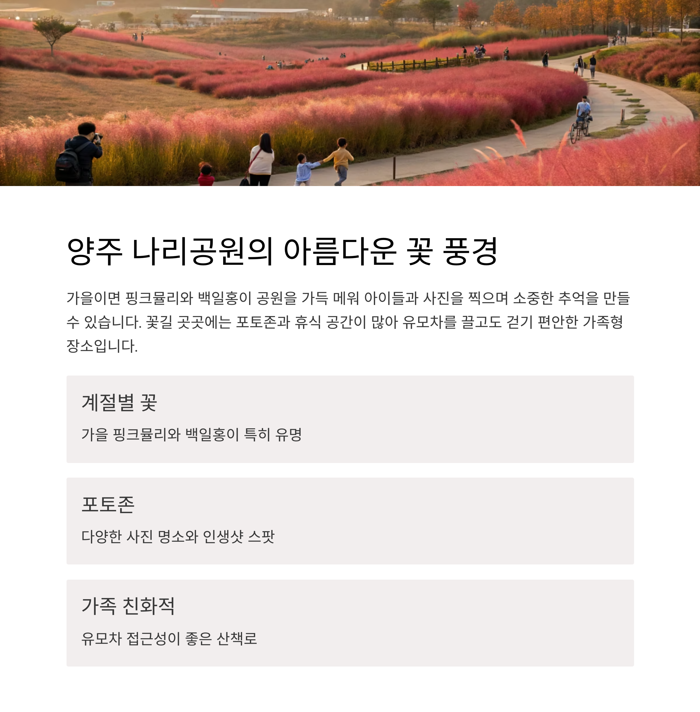 4. 양주 나리공원 – 핑크뮬리와 꽃으로 가득한 포토 명소