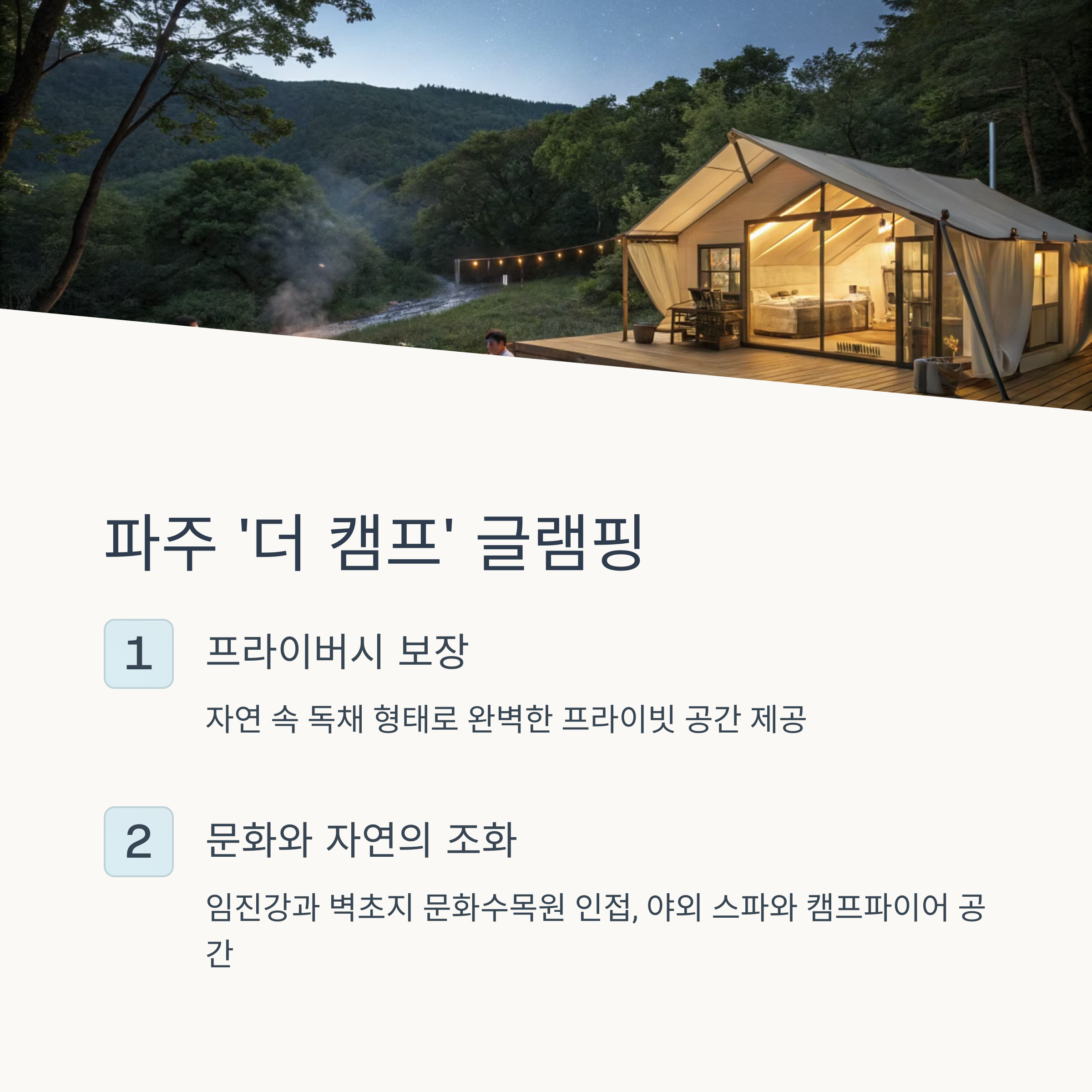 자연 속 독채 글램핑 형태로, 프라이버시를 중시하는 분들께 적합합니다.