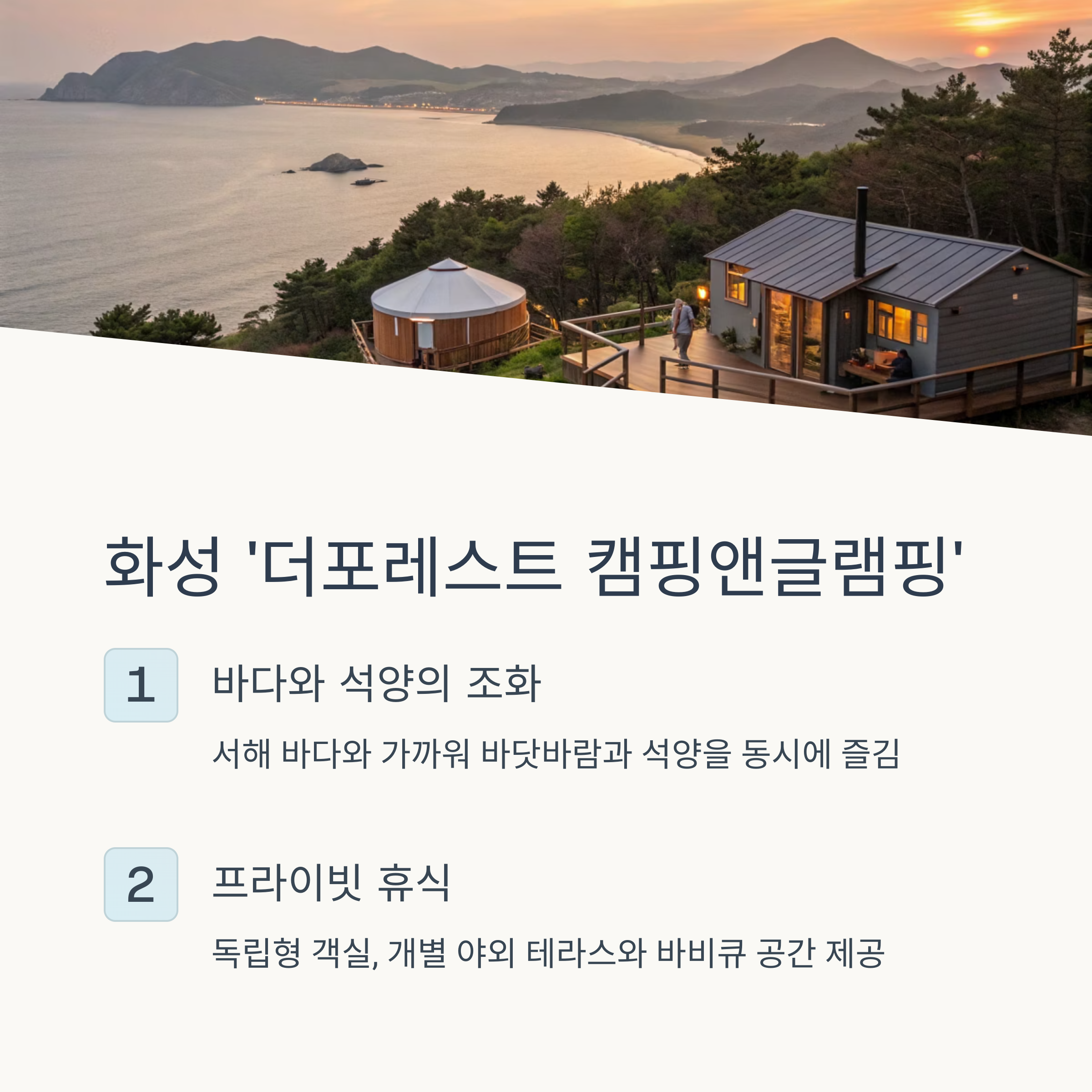 서해 바다와 가까운 위치로, 바닷바람과 석양을 동시에 즐길 수 있는 글램핑장입니다.