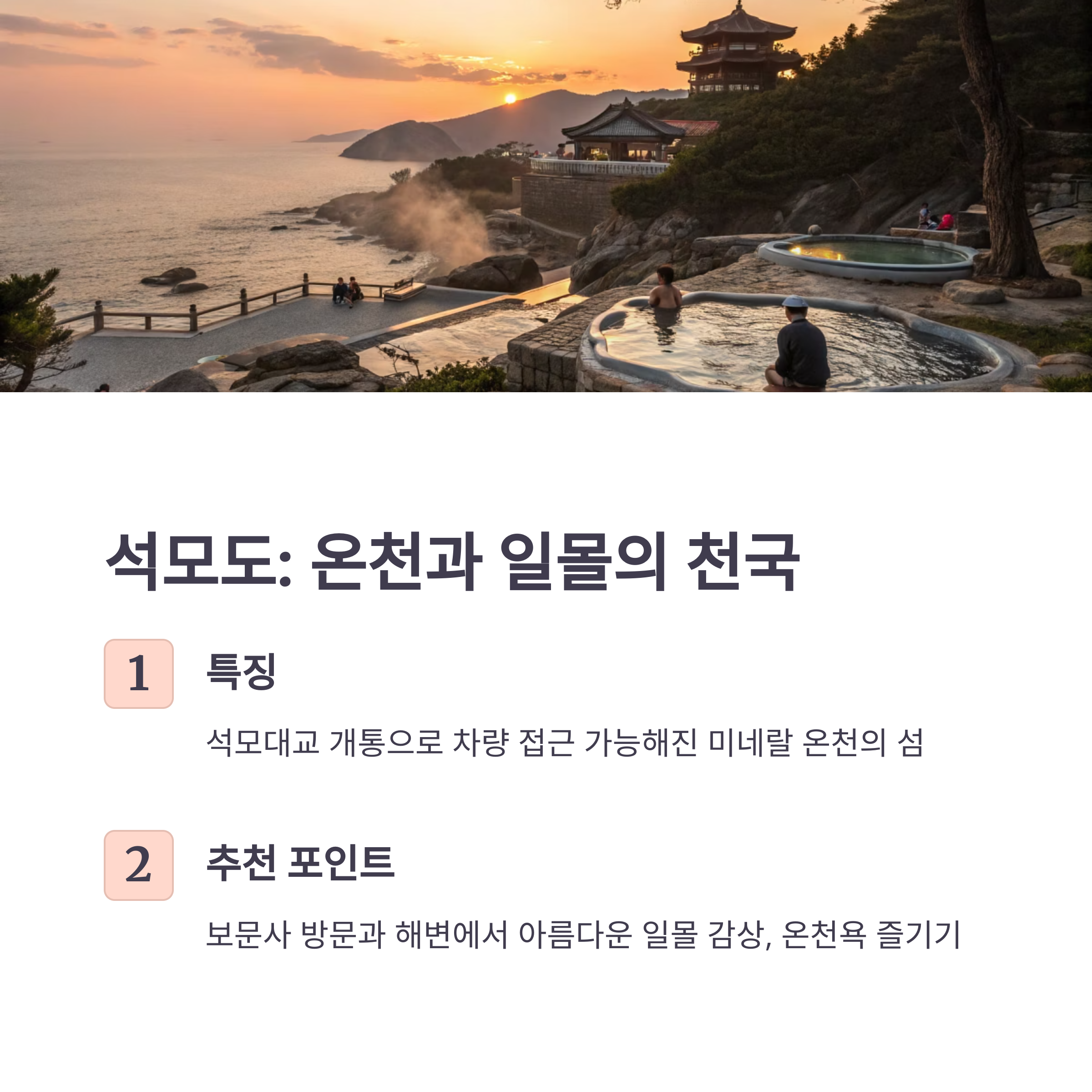 | 석모도 | 온천, 일몰, 보문사 |