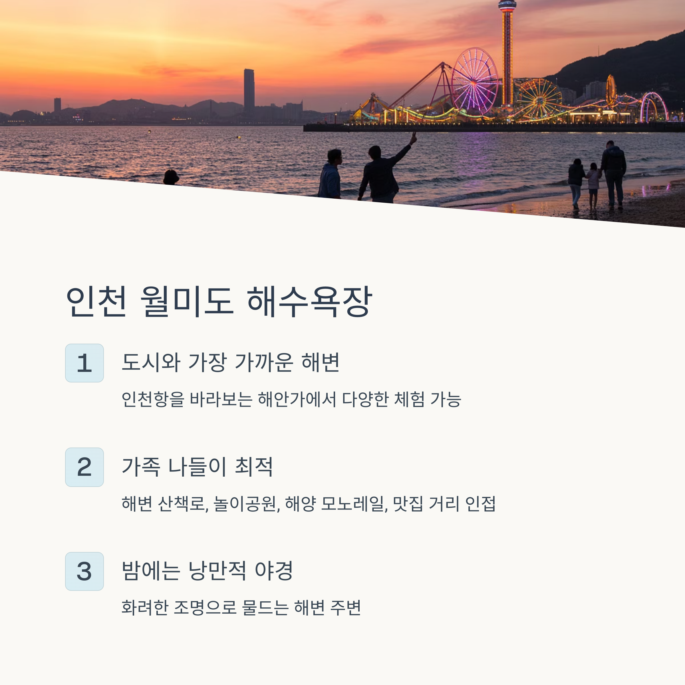 | 월미도 | 도심 근접, 야경 명소, 놀이공원 인접 |