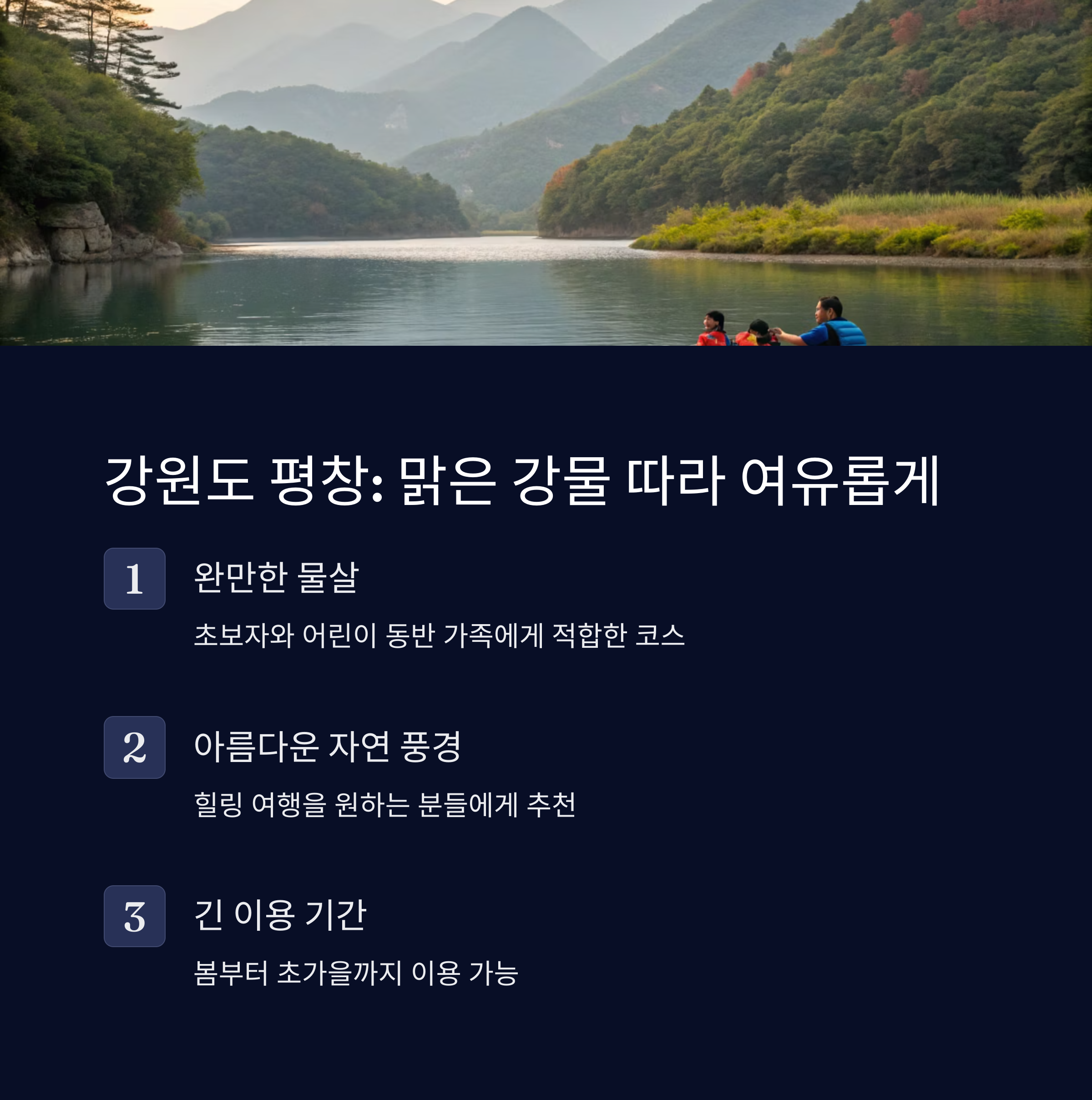 강원도 평창 래프팅: 맑은 강물 따라 여유롭게