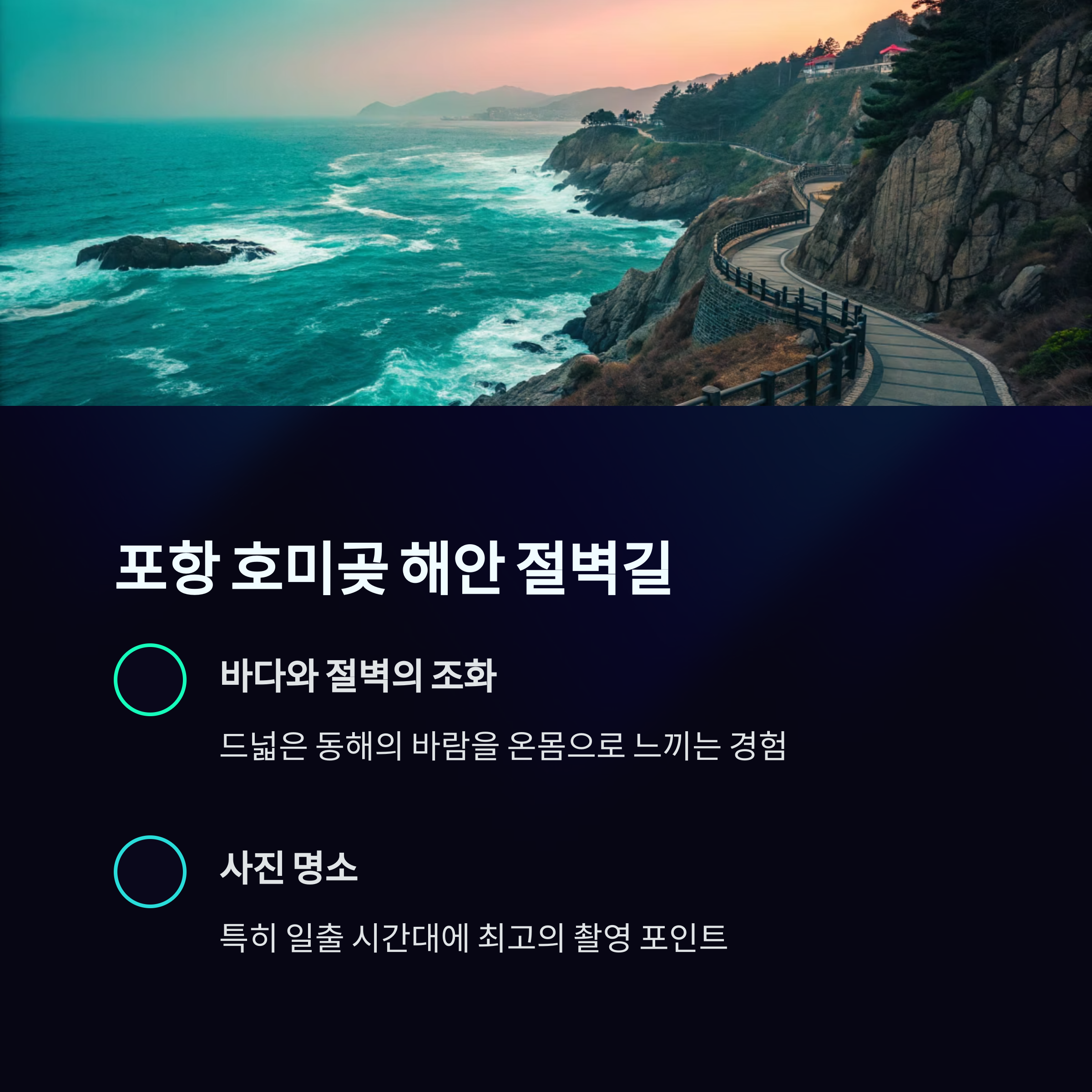 바다와 절벽이 어우러진 최고의 해안 절벽길입니다.