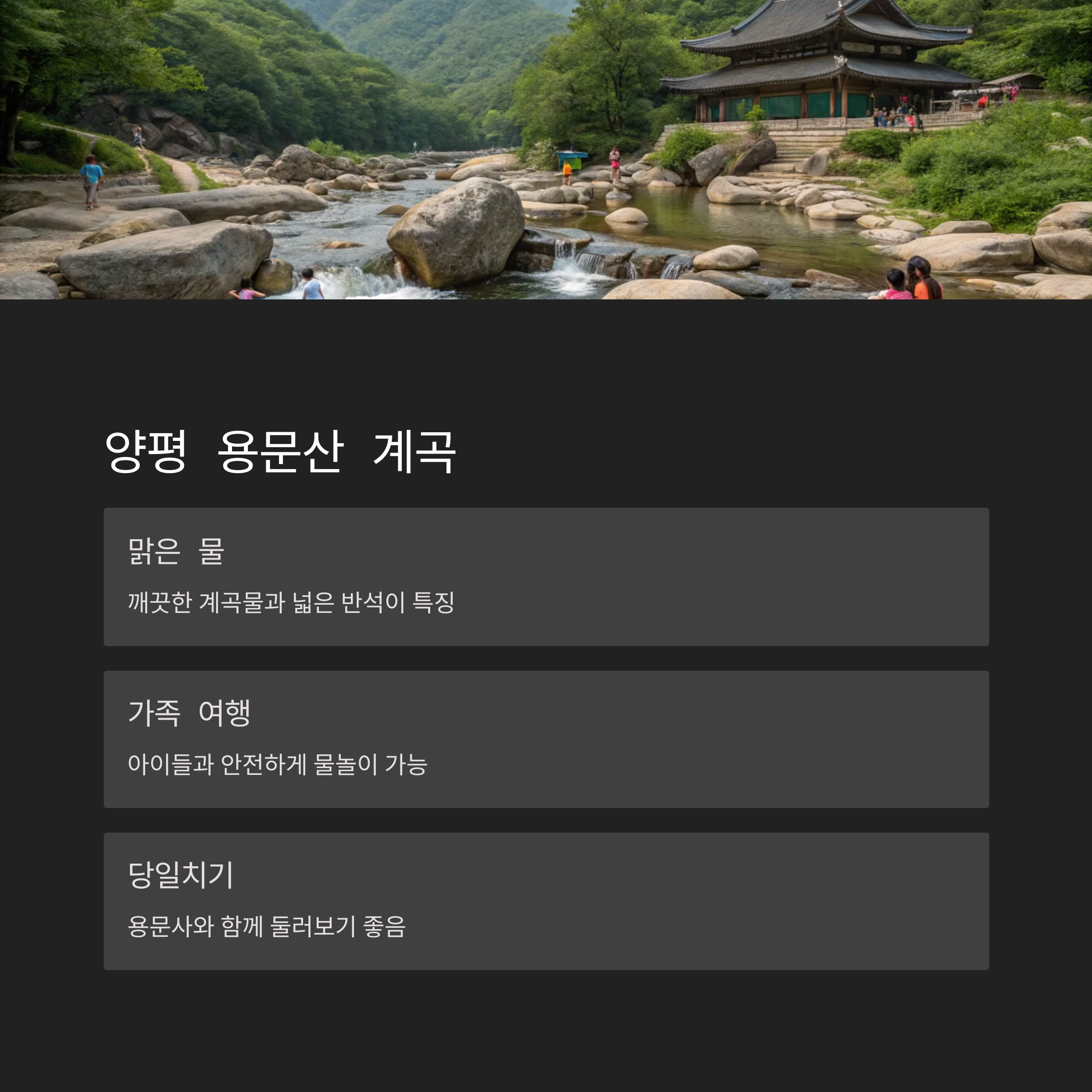 계곡명 주요 볼거리 접근성