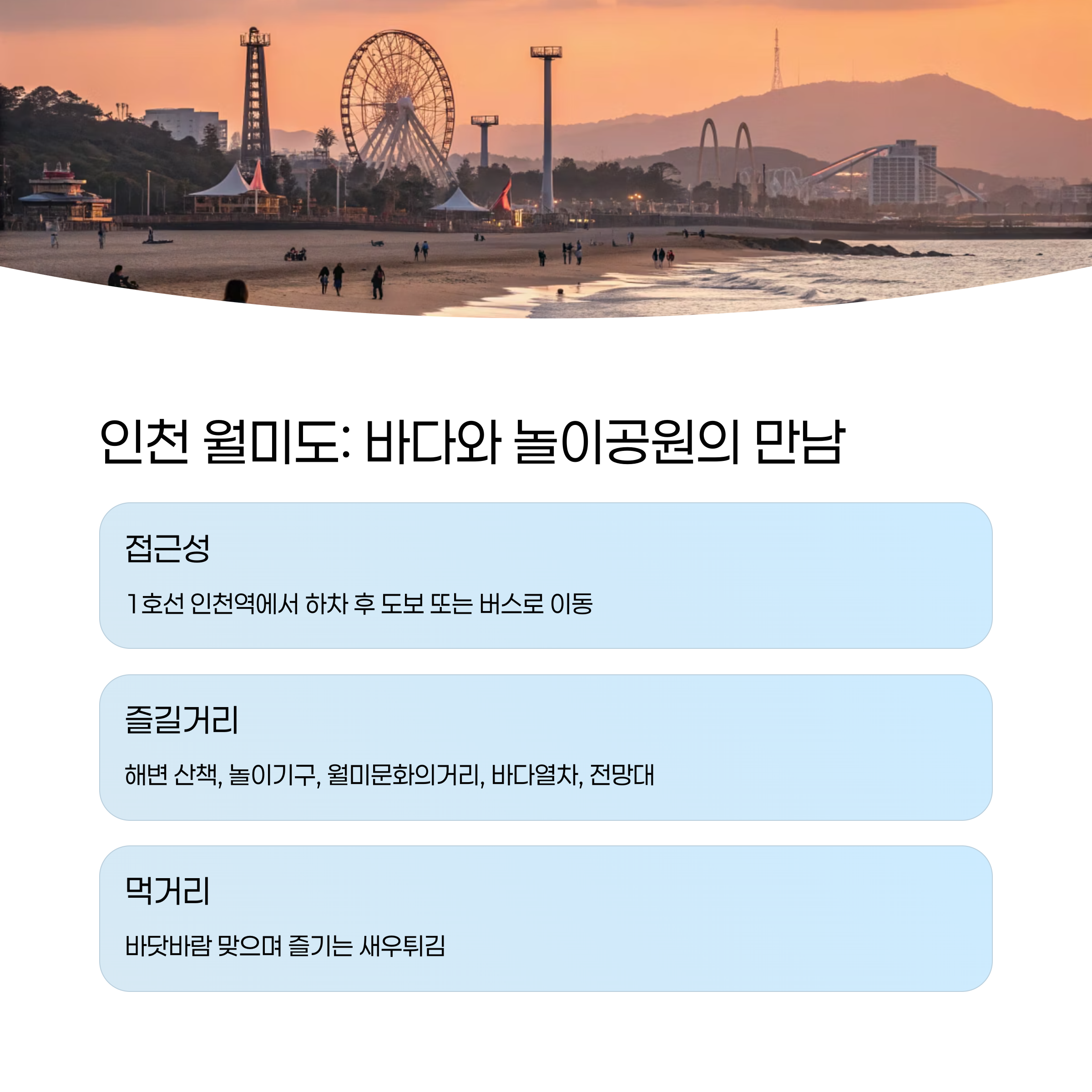 인천 월미도: 바다, 놀이공원, 노을이 어우러진 완벽한 장소