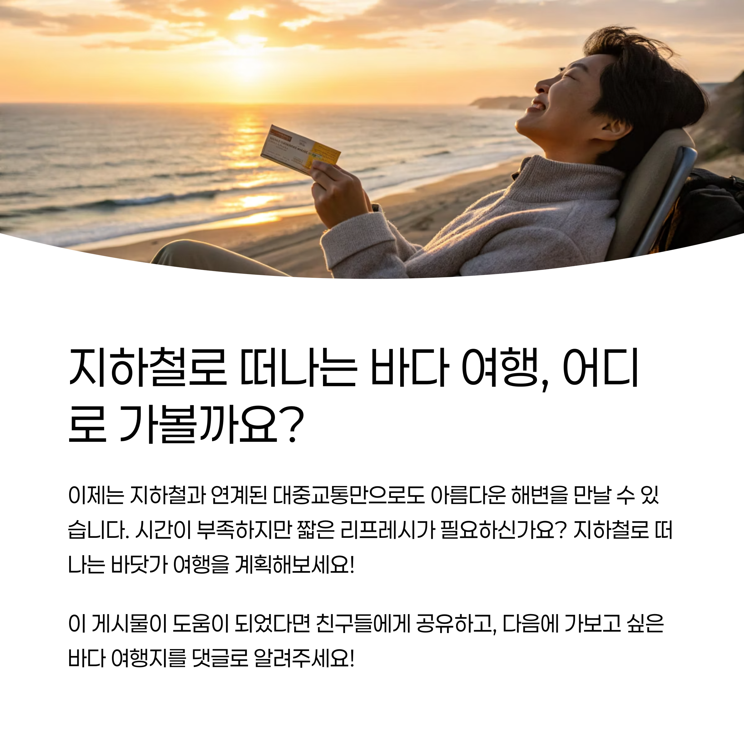 시간이 부족하지만 짧은 리프레시가 필요한 분들에게는 지하철을 활용한 바닷가 여행이 훌륭한 대안이 될 수 있습니다.